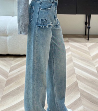 • [홍콩명품,MIU MIU] 미우미우 23SS 로고 여성 빈티지 데님 팬츠 진 청바지, BM11448, TBG, 홍콩명품의류,구매대행,온라인명품