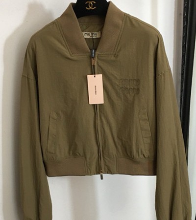 [홍콩명품,MIU MIU] 미우미우 24SS 로고 자수 여성 쇼트 봄버 자켓 (카키), BM11528, BR, 홍콩명품의류,구매대행,온라인명품 요약정보 및 구매