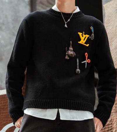 [홍콩명품.LOUIS VUITTON] 루이비통 24SS 로고 그래픽 니트 스웨터 (블랙), BM11562, JL, 홍콩명품의류,구매대행,온라인명품 > 남자의류
