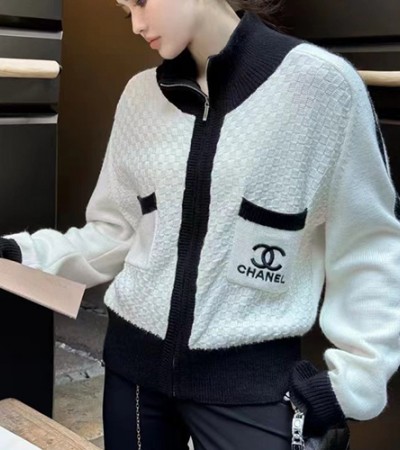 • [홍콩명품.CHANEL] 샤넬 24SS 로고 자수 여성 하이넥 니트 가디건 자켓 (2컬러), BM11603, TBG, 홍콩명품의류,구매대행,온라인명품