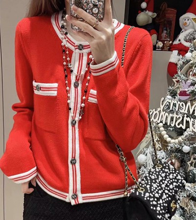 • [홍콩명품.CHANEL] 샤넬 24SS 로고 여성 라운드넥 니트 가디건 (레드), BM11609, TBG, 홍콩명품의류,구매대행,온라인명품