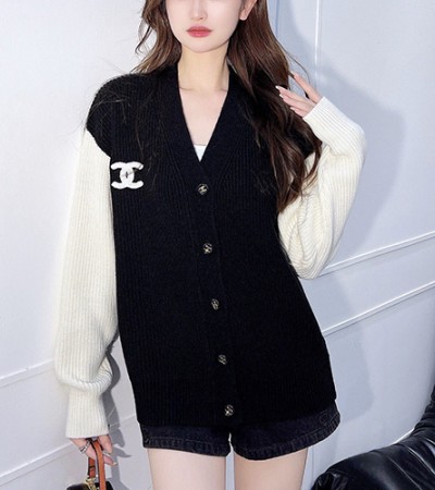 [홍콩명품.CHANEL] 샤넬 24SS 로고 여성 오버핏 V넥 니트 가디건 (블랙-화이트), BM11611, TBG, 홍콩명품의류,구매대행,온라인명품 > 여성몰