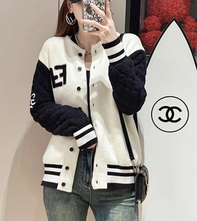 • [홍콩명품,FENDI] 펜디 24SS FF로고 여성 라운드넥 니트 가디건 자켓 (화이트-블랙), BM11622, TBG, 홍콩명품의류,구매대행,온라인명품