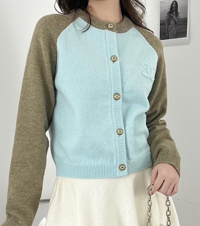 • [홍콩명품.CHANEL] 샤넬 24SS 로고 여성 라운드넥 니트 가디건 (스카이블루), BM11632, TBG, 홍콩명품의류,구매대행,온라인명품