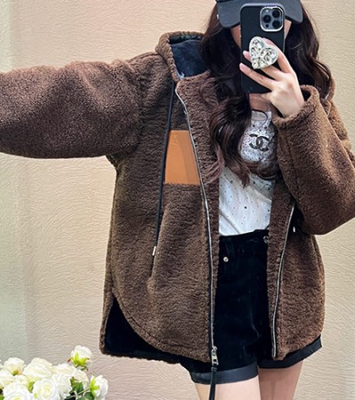 • [홍콩명품.LOEWE] 로에베 24SS 로고 여성 후드 플리스 자켓 (브라운), BM11652, TBG, 홍콩명품의류,구매대행,온라인명품