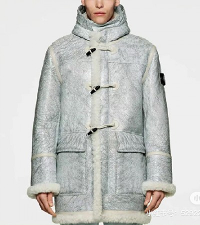 • [홍콩명품.Stone Island] 스톤아일랜드 24SS 로고 시어링 레더 가죽 코트 자켓 (그레이), BM11744, TOM, 홍콩명품의류,구매대행,온라인명품