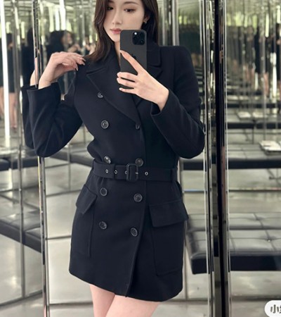 [홍콩명품.YSL] 입생로랑 24SS 로고 여성 벨티드 코트 자켓 (블랙), BM11747, TBG, 홍콩명품의류,구매대행,온라인명품 요약정보 및 구매