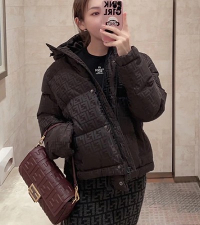 • [홍콩명품,FENDI] 펜디 24SS 로고 FF패턴 여성 후드 다운 패딩 자켓 (블랙), BM11756, TBG, 홍콩명품의류,구매대행,온라인명품