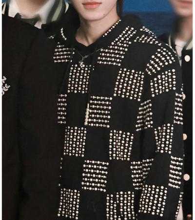 • [홍콩명품.LOUIS VUITTON] 루이비통 24SS 로고 다미에 스터드장식 후드 티셔츠 (블랙), BM11805, YS, 홍콩명품의류,구매대행,온라인명품