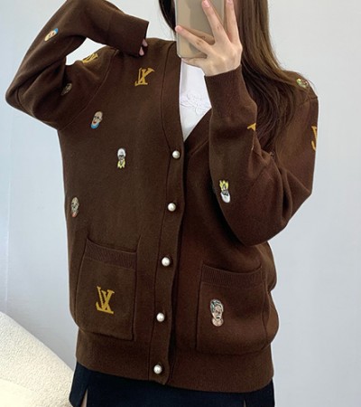 [홍콩명품.LOUIS VUITTON] 루이비통 24SS 로고 여성 V넥 여성 니트 가디건 (브라운), BM11919, TBG > 여성몰