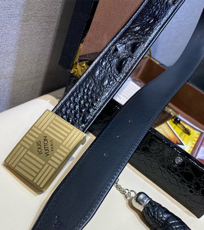 • [홍콩명품.LOUIS VUITTON] 루이비통 24SS 로고 악어가죽 벨트 (2종), BT1086, 3.8cm, BRB, 명품레플리카,인터넷쇼핑몰,남자명품,해외직구