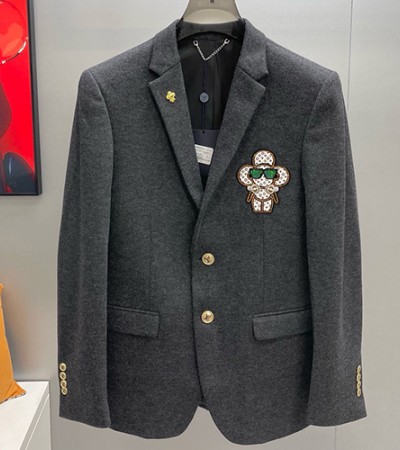 • [홍콩명품.LOUIS VUITTON] 루이비통 24SS 로고 자수 울 정장 수트 자켓 (그레이), BM11968, JS, 홍콩명품의류,구매대행,온라인명품