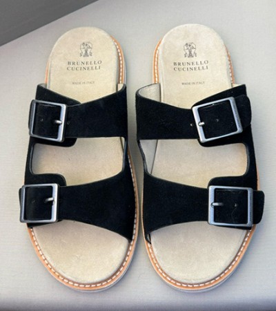 [홍콩명품.Brunello Cucinelli ] 브루넬로쿠치넬리 24SS 로고 레더 가죽 바겐스탁 슬리퍼 (블랙), SE2594, S2, 홍콩명품쇼핑몰,무브타임,악세사리,잡화,생활용품 > 신발