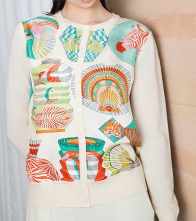 [홍콩명품.Hermes] 에르메스 24SS 로고 패턴 라운드넥 니트 가디건 (아이보리), BM12105, BR, 홍콩명품의류,구매대행,온라인명품 > 여성몰