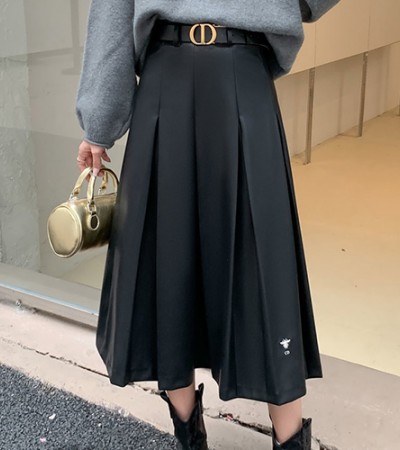 • [홍콩명품,Christian Dior] 디올 24SS CD로고 벨티드 레더 가죽 미디 스커트 (블랙), BM12139, TBG, 홍콩명품의류,구매대행,온라인명품
