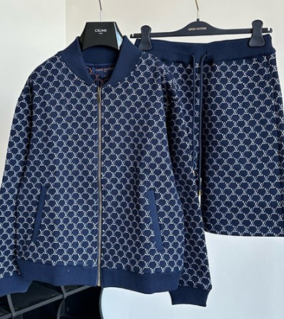• [홍콩명품.LOUIS VUITTON] 루이비통 24SS 로고 패턴 봄버 자켓 + 쇼츠 반바지 상하의 세트 (네이비), BM12332, JU, 홍콩명품의류,구매대행,온라인명품