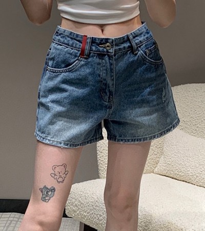 • [홍콩명품.LOEWE] 로에베 24SS 로고 자수 여성 데님 미니 쇼츠 반바지, BM12342, W2, 홍콩명품의류,구매대행,온라인명품