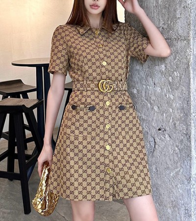 [홍콩명품.Gucci] 구찌 24SS 로고 GG수프림 여성 벨티드 원피스 (베이지), BM12474, TBG, 홍콩명품의류,구매대행,온라인명품 > 여성몰