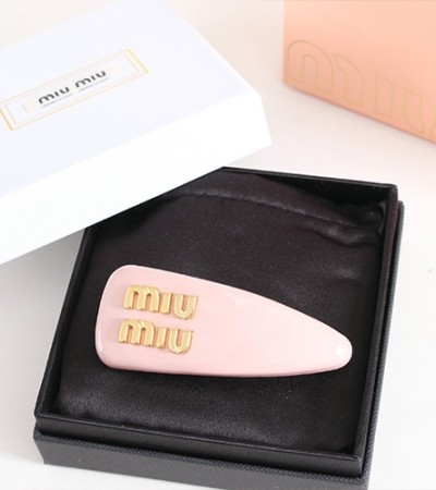 [홍콩명품,MIU MIU] 미우미우 24SS 골드 로고 3.3-8cm 머리핀 (핑크), ET1969, SL, 명품악세사리,팔찌,귀걸이,반지 > 악세사리
