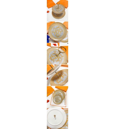 • [홍콩명품.Hermes] 에르메스 24SS 로고 금장 과일 케익 디저트 2층 도자기 접시 그릇 (상20cm-하27cm), ET2078, ZAKKA, 홍콩명품가방,명품쇼핑몰,크로스백,핸드백,구매대행,무브타임