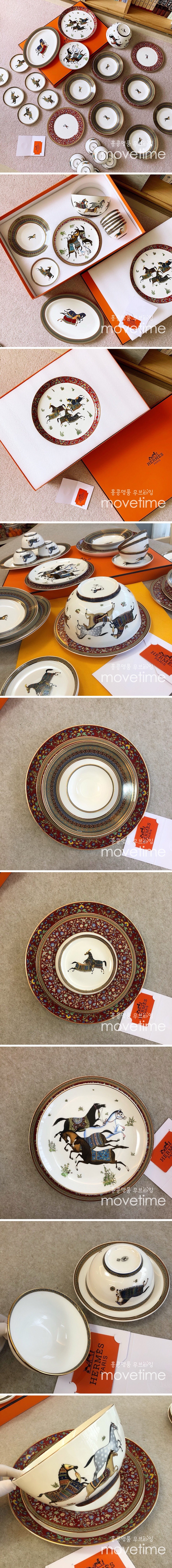 • [홍콩명품.Hermes] 에르메스 24SS 로고 도자기 10인용 주방 용기 키친 세트, ET2124, ZAKKA, 명품접시,와인잔,키홀더,내의,양말,가구주변기기