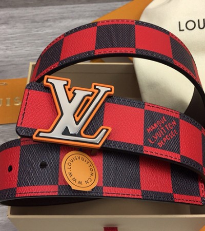 • [홍콩명품.LOUIS VUITTON] 루이비통 24SS LV로고 다미에 가죽 벨트 (레드), BT1134, 4.0cm, MR, 명품레플리카,인터넷쇼핑몰,남자명품,해외직구