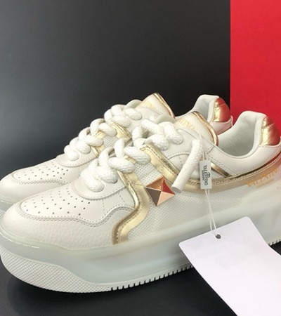 • [홍콩명품.Valentino] 발렌티노 24SS 로고 ONE STUD 레더 가죽 스니커즈 운동화 (화이트-골드), SE2688, PMD, 명품스니커즈,운동화,구두,로퍼,하이탑,신발