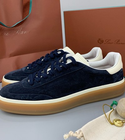 • [홍콩명품.Loro Piana] 로로피아나 24SS 로고 레더 가죽 스니커즈 운동화 (네이비), SE2698, PMD, 명품스니커즈,운동화,구두,로퍼,하이탑,신발