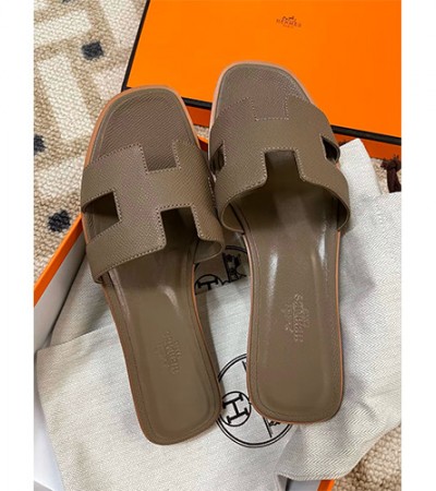 [홍콩명품.Hermes] 에르메스 24SS 로고 여성 레더 가죽 산토리니 샌들 슬리퍼 (브라운), SE2701, H3, 명품스니커즈,운동화,구두,로퍼,하이탑,신발 > 여성몰