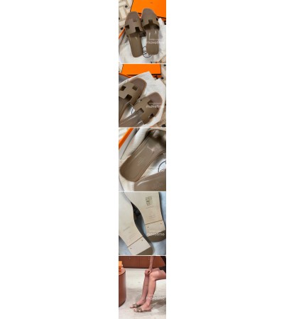 [홍콩명품.Hermes] 에르메스 24SS 로고 여성 레더 가죽 산토리니 샌들 슬리퍼 (브라운), SE2701, H3, 명품스니커즈,운동화,구두,로퍼,하이탑,신발 요약정보 및 구매