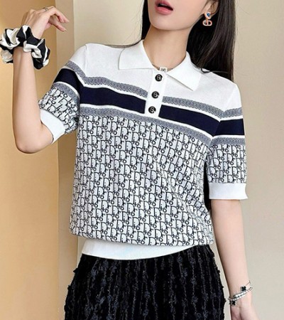 [홍콩명품,Christian Dior] 디올 24SS 로고 여성 오블리크 카라 니트 반팔 티셔츠 (2컬러), BM12811, TBG, 홍콩명품의류,구매대행,온라인명품 요약정보 및 구매