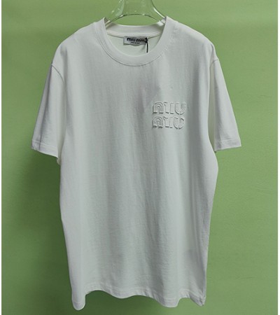 [홍콩명품,MIU MIU] 미우미우 24SS 로고 자수 반팔 티셔츠 (2컬러), BM12870, JL, 홍콩명품의류,구매대행,온라인명품 > 남자의류