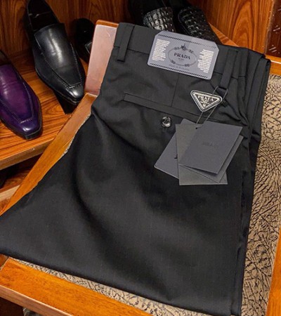 • [홍콩명품,PRADA] 프라다 24SS 로고 스트라이프 정장 팬츠 바지 (블랙), BM12893, S1F, 홍콩명품의류,구매대행,온라인명품