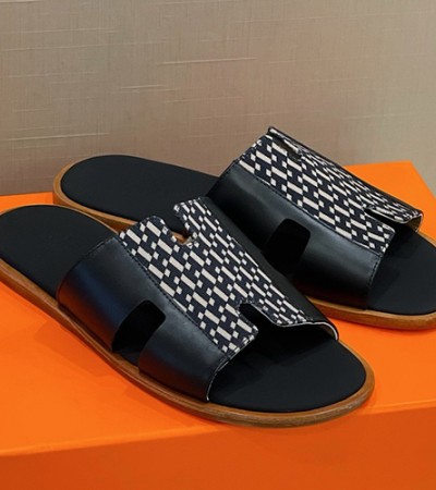 [홍콩명품.Hermes] 에르메스 24SS 로고 그래픽 레더 가죽 슬리퍼 이즈미르 (블랙-패턴), SE2759, S6, 명품스니커즈,운동화,구두,로퍼,하이탑,신발 > 신발