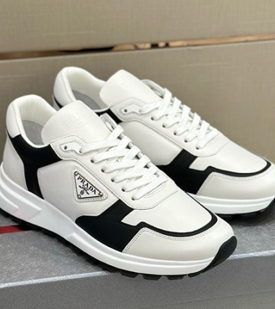 • [홍콩명품,PRADA] 프라다 24SS 삼각로고 레더 가죽 스니커즈 운동화 (화이트-블랙), SE2767, S6, 명품스니커즈,운동화,구두,로퍼,하이탑,신발