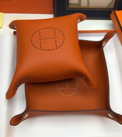 • [홍콩명품.Hermes] 에르메스 24SS 로고 선물용 레더 가죽 인테리어 소품 수납판 2PCS (올오렌지, S-22x22cm, L-25x25cm), ET2264, ZAKKA, 명품악세사리,팔찌,귀걸이,반지