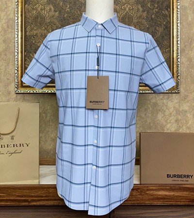 • [홍콩명품.Burberry] 버버리 24SS 로고 체크 패턴 반팔 남방 셔츠 (스카이블루), BM12978, S1F, 홍콩명품의류,구매대행,온라인명품