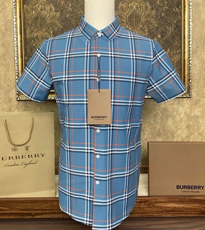 [홍콩명품.Burberry] 버버리 24SS 로고 체크 패턴 반팔 남방 셔츠 (블루), BM12980, S1F, 홍콩명품의류,구매대행,온라인명품 요약정보 및 구매