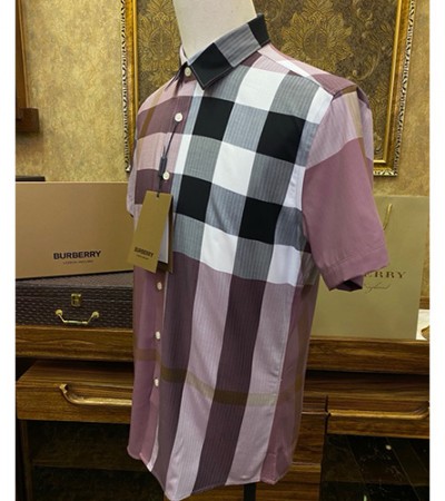 • [홍콩명품.Burberry] 버버리 24SS 로고 체크 패턴 반팔 남방 셔츠 (퍼플), BM12985, S1F, 홍콩명품의류,구매대행,온라인명품