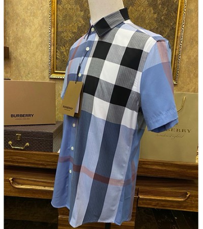• [홍콩명품.Burberry] 버버리 24SS 로고 체크 패턴 반팔 남방 셔츠 (스카이블루), BM12986, S1F, 홍콩명품의류,구매대행,온라인명품