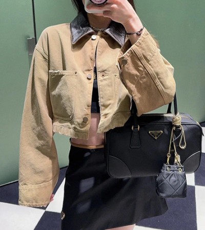 [홍콩명품,PRADA] 프라다 24SS 삼각로고 여성 데님 카라 자켓 (베이지), BM13030, TBG, 홍콩명품의류,구매대행,온라인명품 > 여성몰