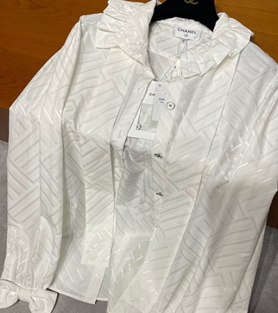 • [홍콩명품.CHANEL] 샤넬 23SS 로고 리본 장식 블라우스 셔츠 (2컬러), BM9922, PG, 온라인명품쇼핑몰,남자명품의류,인터넷쇼핑몰,해외직구