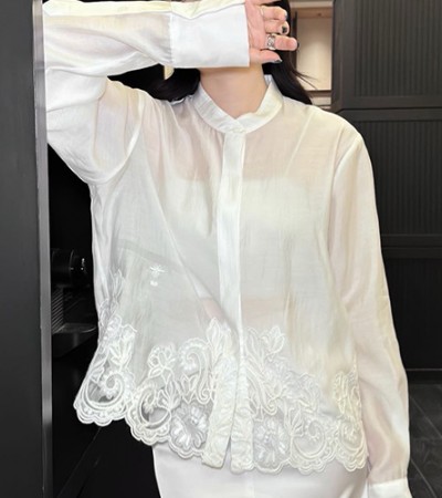 [홍콩명품,Christian Dior] 디올 24SS 로고 여성 레이스 장식 블라우스 셔츠 (화이트), BM13153, TBG, 홍콩명품의류,구매대행,온라인명품 요약정보 및 구매