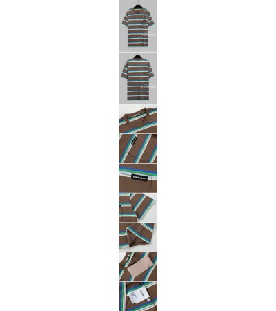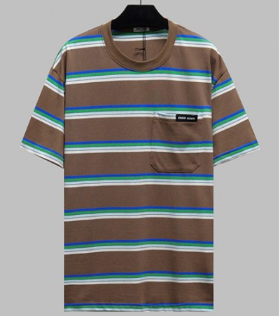 [홍콩명품,MIU MIU] 미우미우 24SS 로고 스트라이프 반팔 티셔츠 (브라운), BM13206, JU, 홍콩명품의류,구매대행,온라인명품 > 남자의류