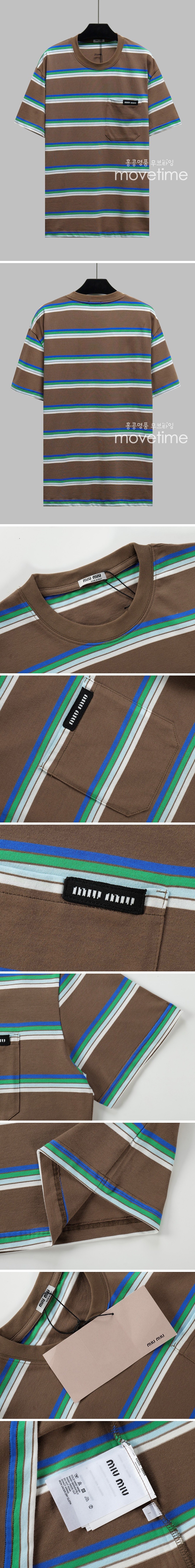 [홍콩명품,MIU MIU] 미우미우 24SS 로고 스트라이프 반팔 티셔츠 (브라운), BM13206, JU, 홍콩명품의류,구매대행,온라인명품 요약정보 및 구매