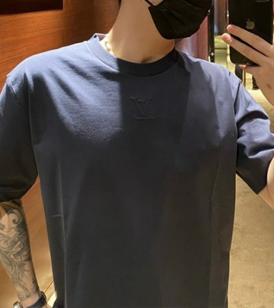 [홍콩명품.LOUIS VUITTON] 루이비통 24SS LV로고 코튼 반팔 티셔츠 (네이비), BM13327, JU, 홍콩명품의류,구매대행,온라인명품 > 남자의류