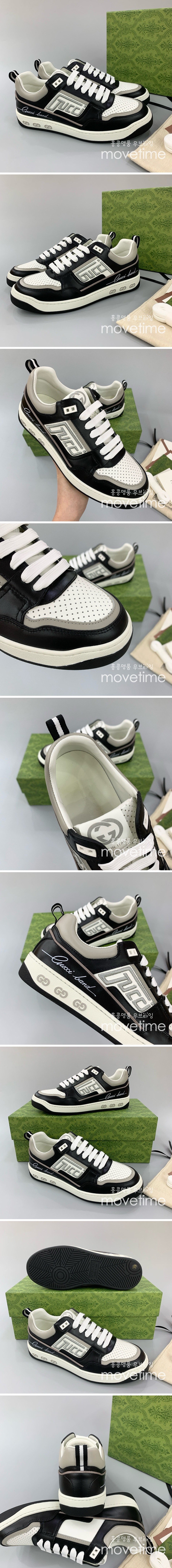 • [홍콩명품.Gucci] 구찌 24SS 로고 자수 레더 가죽 스니커즈 운동화 (블랙-그레이), SE2877, PMD, 명품스니커즈,운동화,구두,로퍼,하이탑,신발