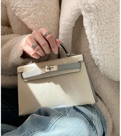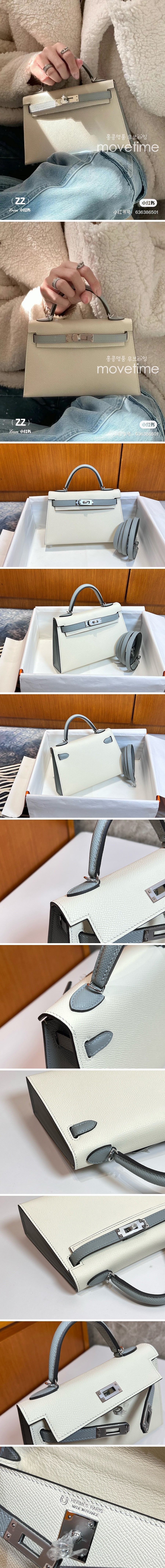 • [홍콩명품.Hermes] 에르메스 24SS 로고 Mini Kelly 레더 가죽 크로스백 핸드백 (화이트-그레이), BGM2897, H3, 홍콩명품가방,명품쇼핑몰,크로스백,핸드백,구매대행,무브타임