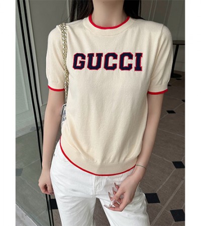 • [홍콩명품.Gucci] 구찌 24SS 로고 여성 니트 반팔 티셔츠 (2컬러), BM13358, TBG, 홍콩명품의류,구매대행,온라인명품