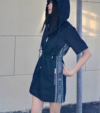 • [홍콩명품,Christian Dior] 디올 24SS 로고 여성 데님 후드 하프지퍼 원피스, BM13361, TBG, 홍콩명품의류,구매대행,온라인명품
